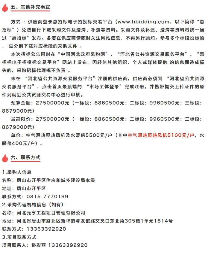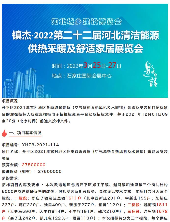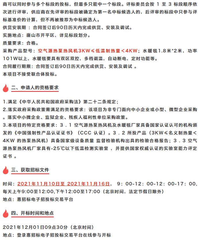 5000户,单价5100元!河北省唐山市开平区2021热泵热风机项目招标